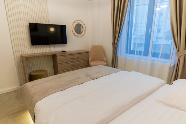 Camerele Troia Boutique Hotel sunt decorate modern, cu accente calde și finisaje de calitate, creând un echilibru între funcționalitate și atmosferă primitoare. Fiecare spațiu reflectă grijă pentru confort, intimitate și relaxare, oferind oaspeților liniștea de care au nevoie după o zi plină.
